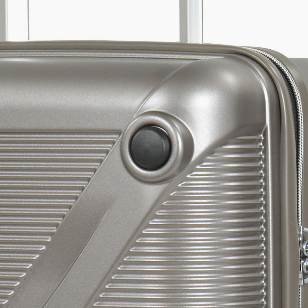 Handle caps, corner protectors, rubber studs, bumpers and other parts are attached to the suitcase using screws or can be just pressed into position.
